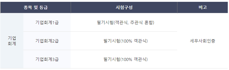 기업회계 자격증은 1급, 2급, 3급으로 구분돼 있습니다.